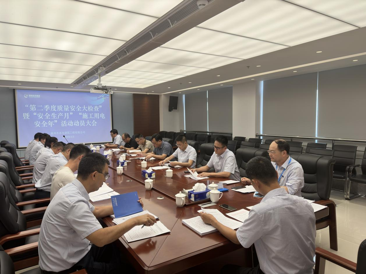 為進一步營造企業(yè)安全生產(chǎn)文化氛圍,創(chuàng)建“人人講安全、個個會應急”的和諧企業(yè),預防各類生產(chǎn)安全事故的發(fā)生,根據(jù)公司部署要求,安委會于5月15日下午召開第二季度質(zhì)量安全大檢查暨“安全生產(chǎn)月”“施工用電安全年”動員大會,會議由分管安全生產(chǎn)的副總經(jīng)理陳占瑞主持,“安全…......