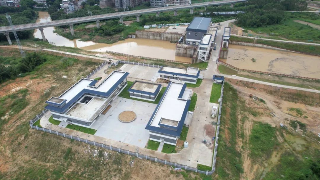 惠東縣融媒體中心記者鄧心怡:“現(xiàn)在我在位置就是新建成的泵站機組旁邊,這是目前惠州最大裝機容量的排澇站。隨著水流噴涌而出,白花河整治工程正式具備了排水能力,也標志著白花鎮(zhèn)的防洪排澇體系正式建成。”