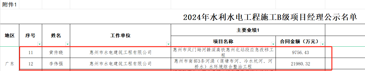 11月13日,中國水利企業(yè)協(xié)會發(fā)布2024年水利水電工程施工項目經(jīng)理評價結(jié)果公示,我司黃傳曉、李偉強2名同志被評為水利水電工程施工B級項目經(jīng)理。