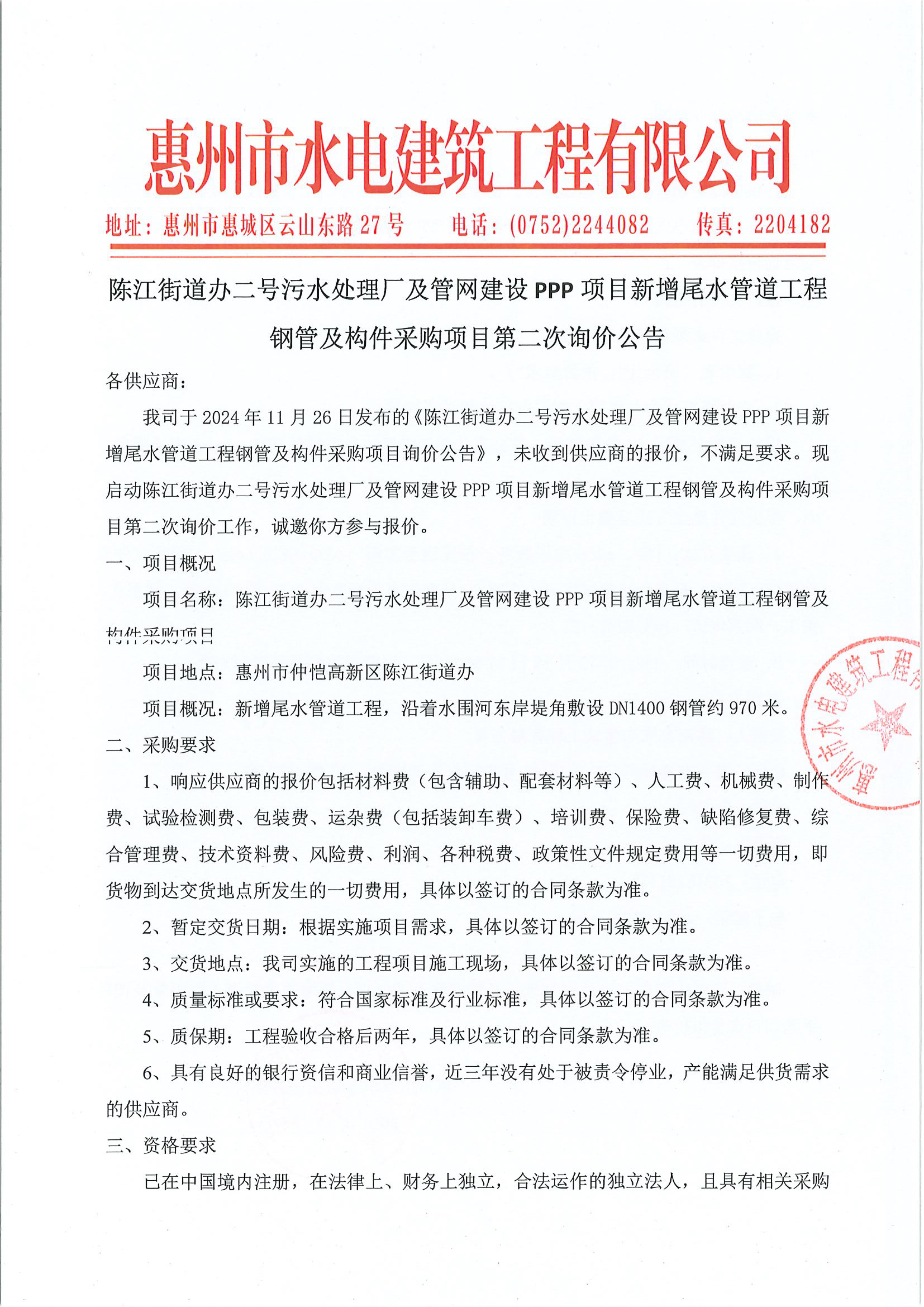 陳江街道辦二號(hào)污水處理廠及管網(wǎng)建設(shè)PPP項(xiàng)目新增尾水管道工程鋼管及構(gòu)件采購(gòu)項(xiàng)目第二次詢價(jià)公告附件: