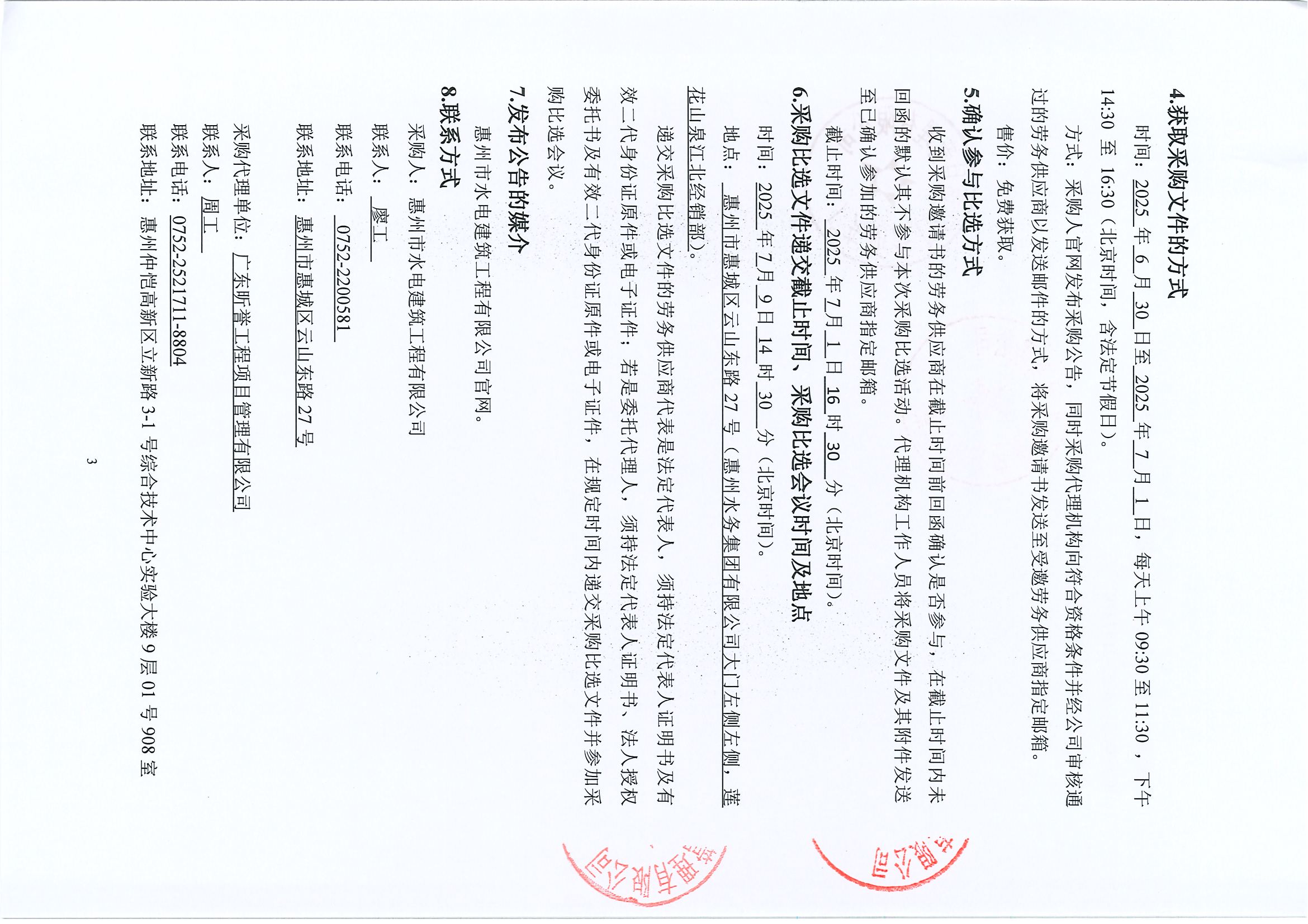 廣東省惠州市中心城區(qū)防洪排澇綜合治理工程(青邊瀝治理(一期)工程)施工勞務(wù)采購比選公告