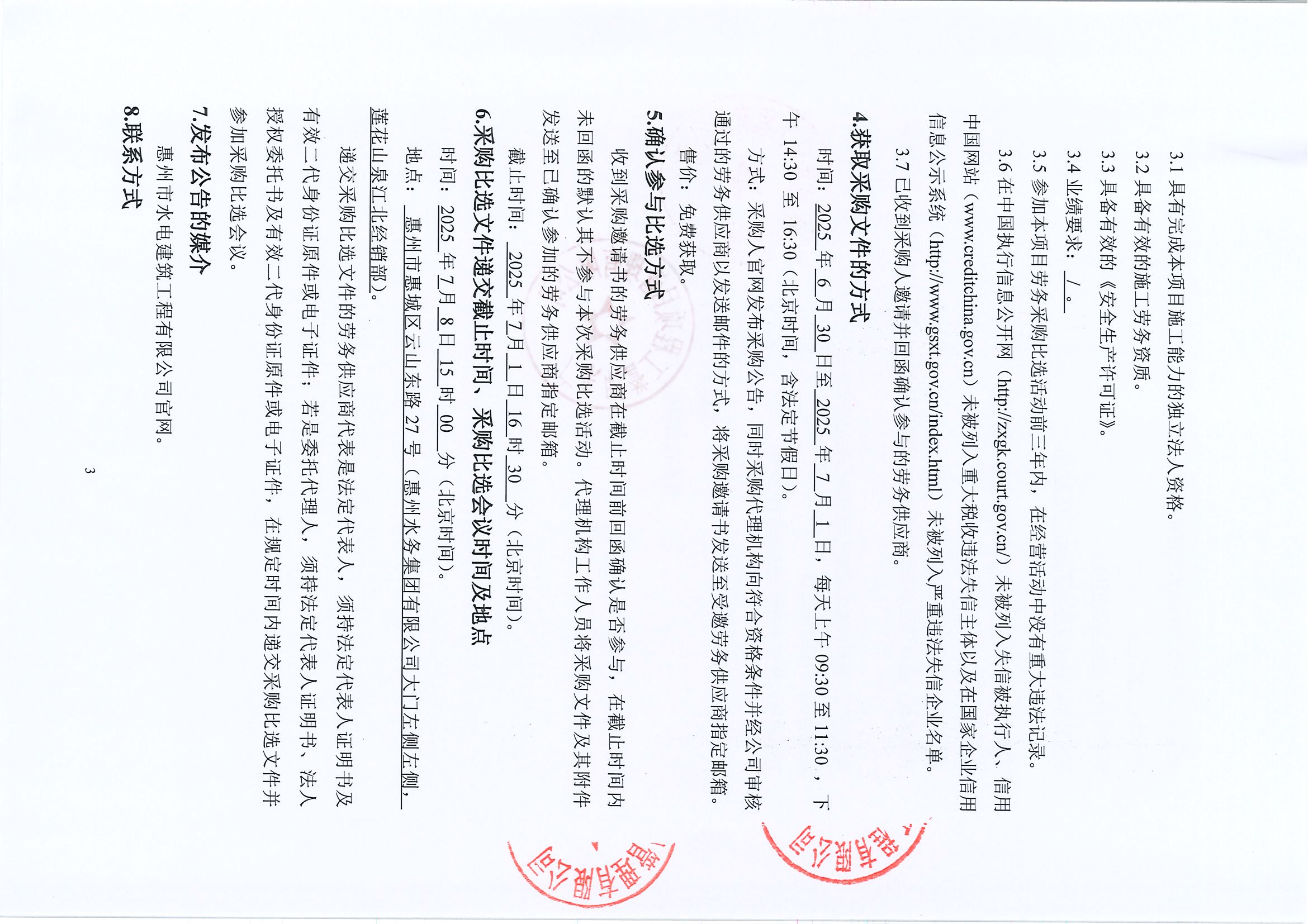 廣東省惠州市中心城區(qū)防洪排澇綜合治理工程(大湖溪水及其支流(一期)工程)施工勞務(wù)采購比選公告