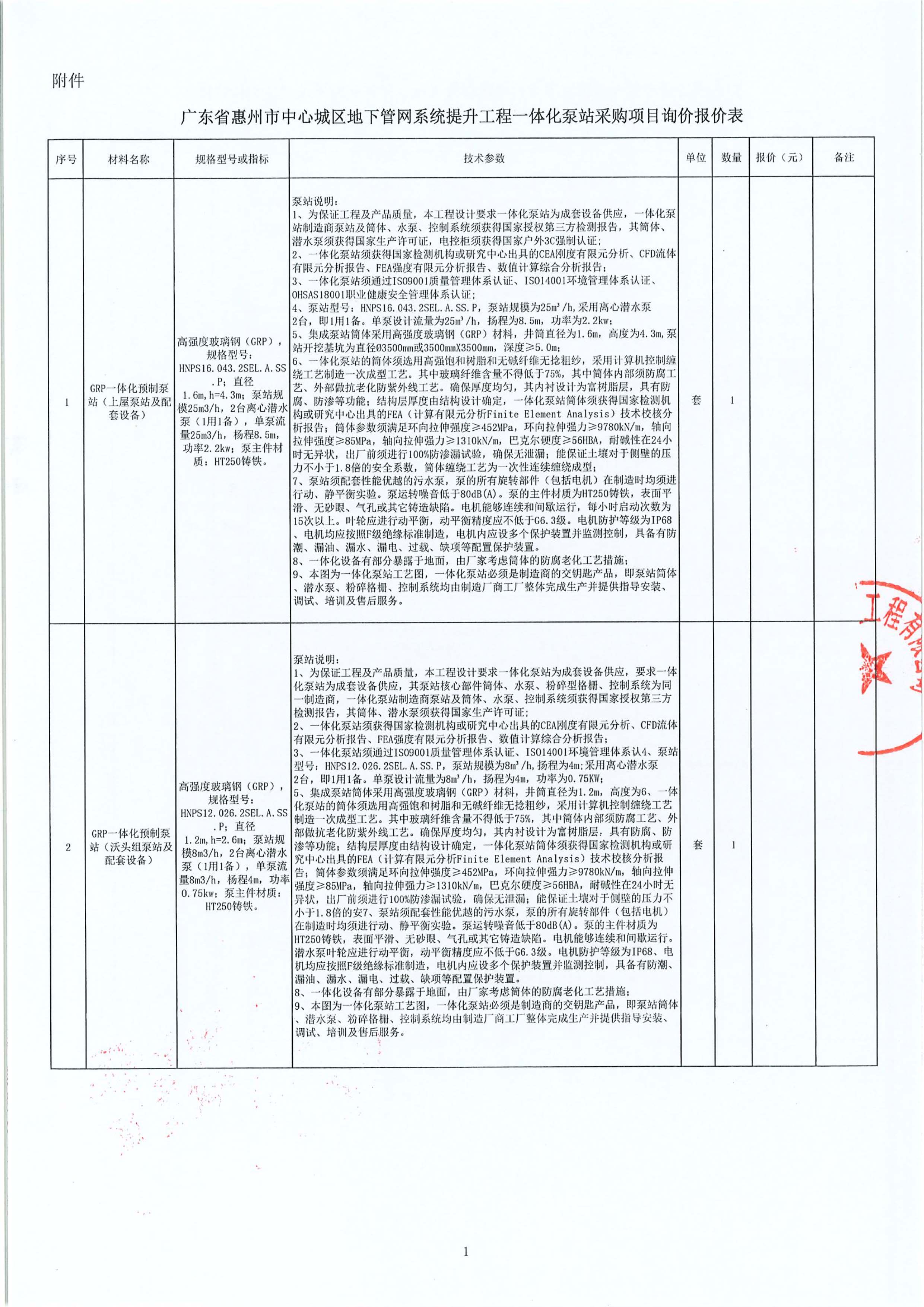 廣東省惠州市中心城區(qū)地下管網(wǎng)系統(tǒng)提升工程一體化泵站采購項(xiàng)目詢價(jià)公告附件: